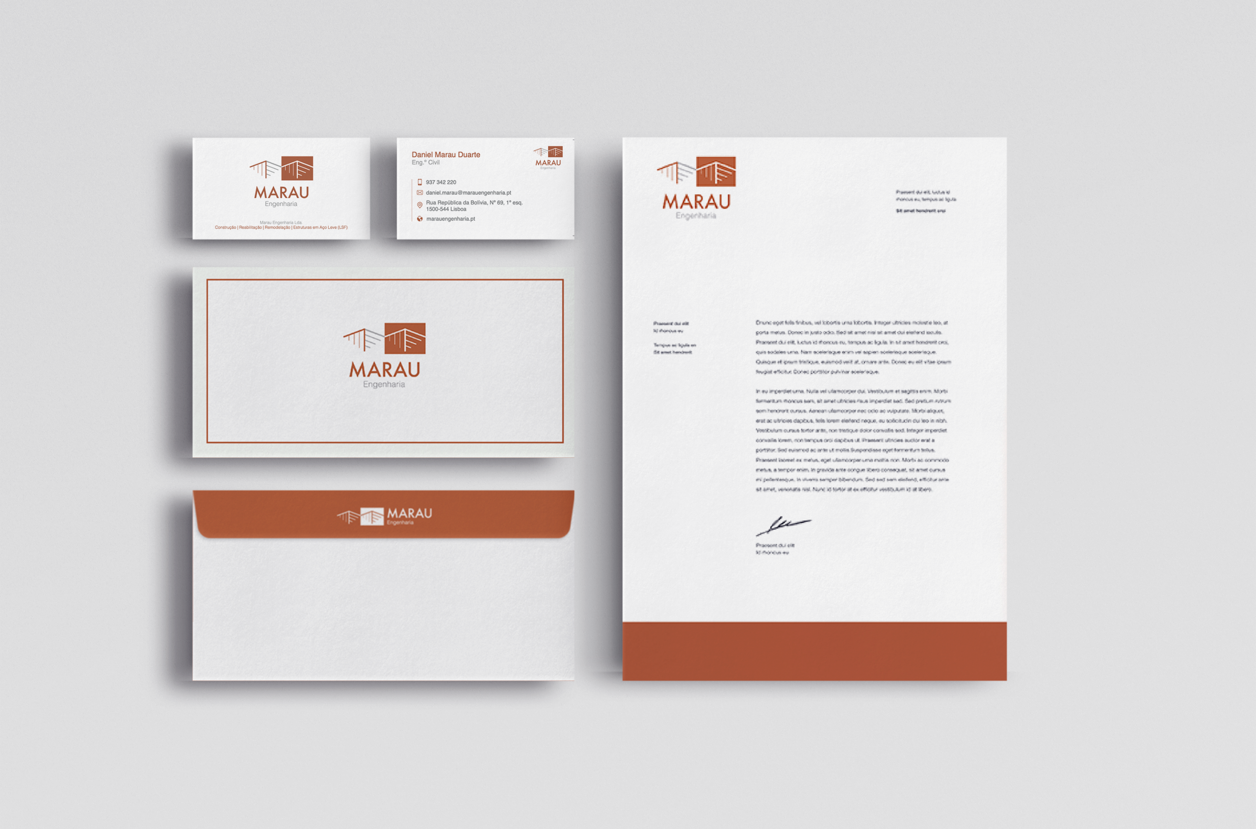 O desafio da MARAU Engenharia passou por transformar os seus valores técnicos e operacionais numa linguagem visual clara, sólida e reconhecível.